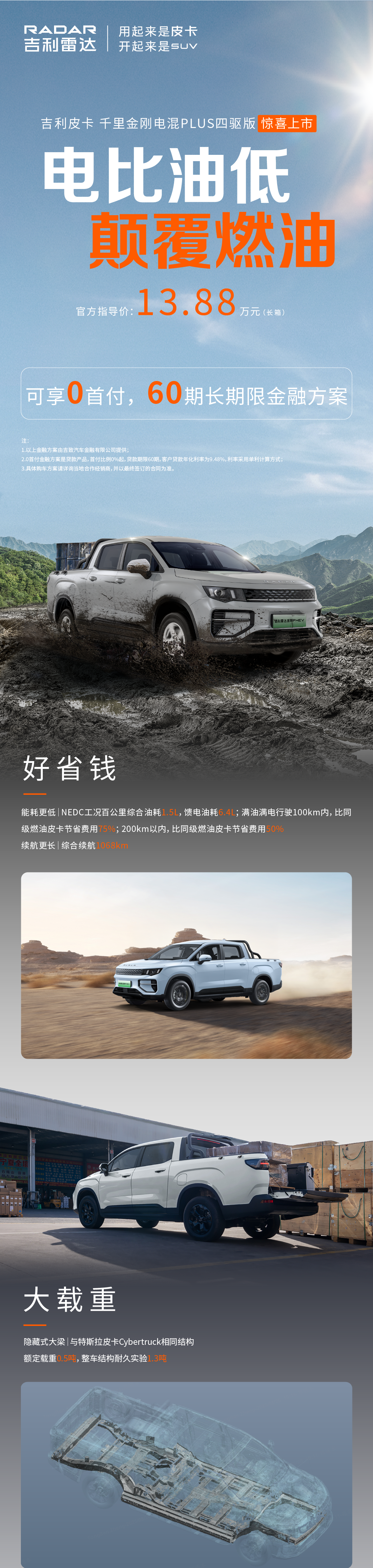 吉利皮卡千里金刚电混PLUS四驱版惊喜上市