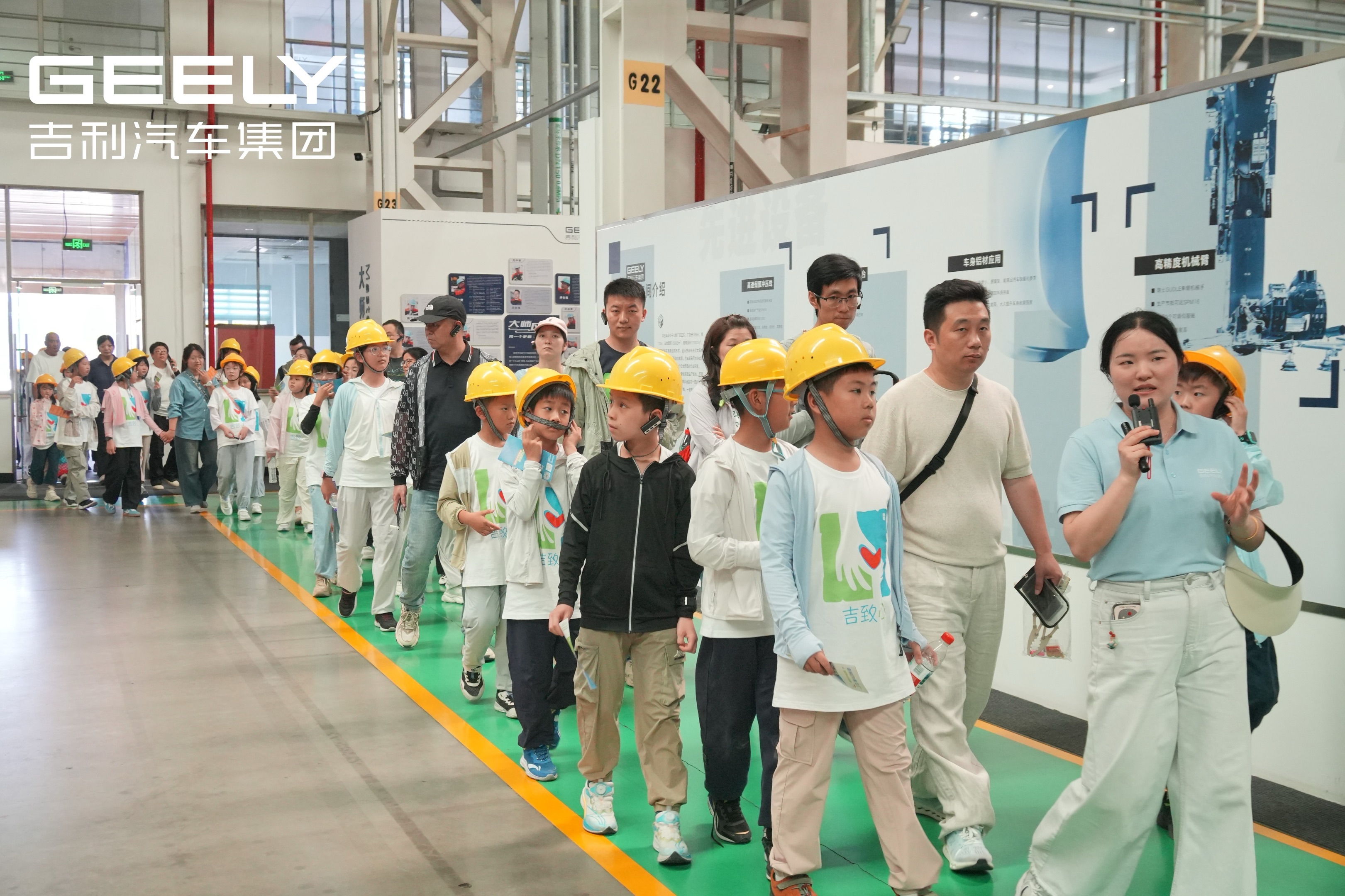 志愿者们带领孩子们走进位于杭州钱塘区的吉利汽车基地,开启了一场充满科技魅力的探索之旅。孩子们系统学习了汽车发展历史及智能化工业知识,走进冲压、焊接与整装车间,亲眼目睹钢板如何在千吨压力下精准成型,感受智能制造带来的震撼。